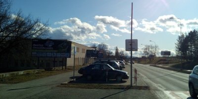 Košice - , Príjazdová komunikácia na letisko v Košiciach, smer centrum, panel po ľavej strane vozovky.