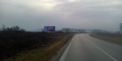 Kosice - Príjazdová cesta z US STEEL do Košíc, viditeľný nájazd 200 m. Jedna z hlavných "dopravných tepien" mesta Košice. Umiestnenie po LAVEJ strane vozovky.