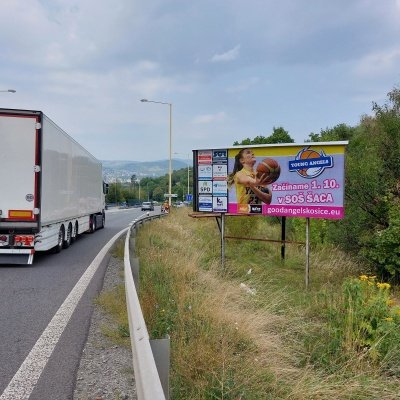 Kosice - Príjazdová cesta z US STEEL do Košíc, viditeľný nájazd 200 m. Jedna z hlavných "dopravných tepien" mesta Košice. Umiestnenie po LAVEJ strane vozovky.