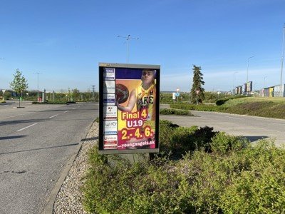 Košice MČ Juh, Červený rak/OC Optima II., vstup do areálu od Miškolca, Billa Young Angeles