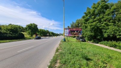 Kosice - Príjazdová cesta z US STEEL do Košíc, viditeľný nájazd 200 m. Jedna z hlavných "dopravných tepien" mesta Košice. Umiestnenie po LAVEJ strane vozovky.