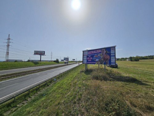 Kosice - Príjazdová cesta z US STEEL do Košíc, viditeľný nájazd 200 m. Jedna z hlavných "dopravných tepien" mesta Košice. Umiestnenie po LAVEJ strane vozovky.