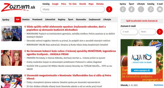 Monitoring: www.zoznam.sk